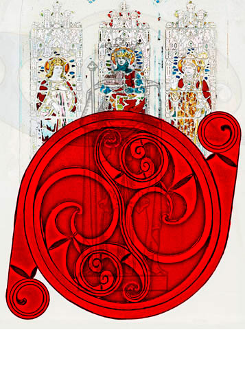 Between 1999 and 2001 I created a body of work concerning two saints from south-east Wales as prints, animation and installation. These images represented a change in direction of travel: utilising specific examples of mainly Welsh historical visual culture in the interpretation of the past. Since these images were made, my work has been less intertwined with specific Welsh medieval narratives and more abstract.